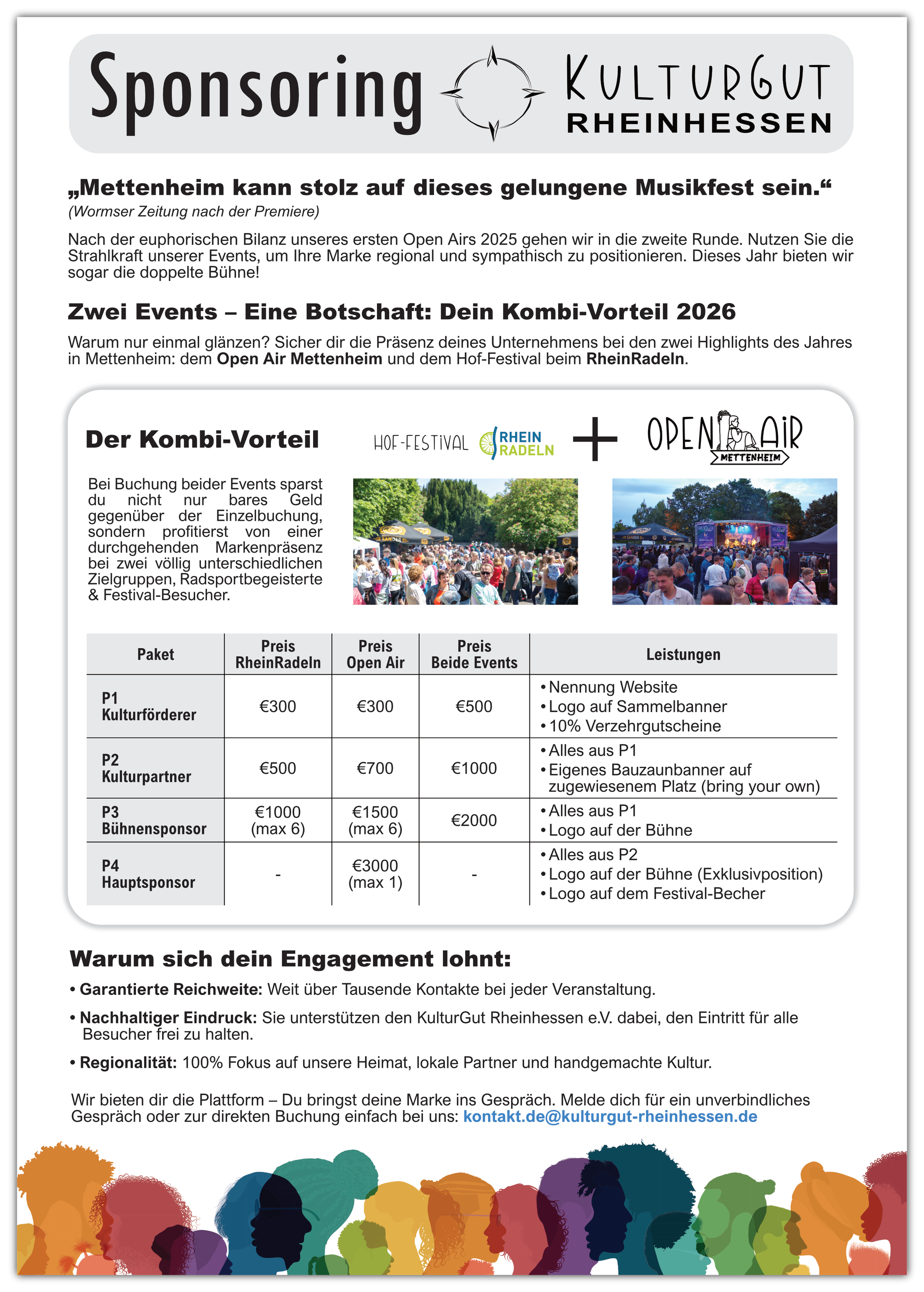 Unterstütze das KulturGut Rheinhessen! Ob Spende oder Sponsoring – jeder Cent fließt direkt in unsere nächsten Events, um sie noch größer zu machen. Jetzt One-Pager laden oder direkt spenden und unsere Heimat bewegen!